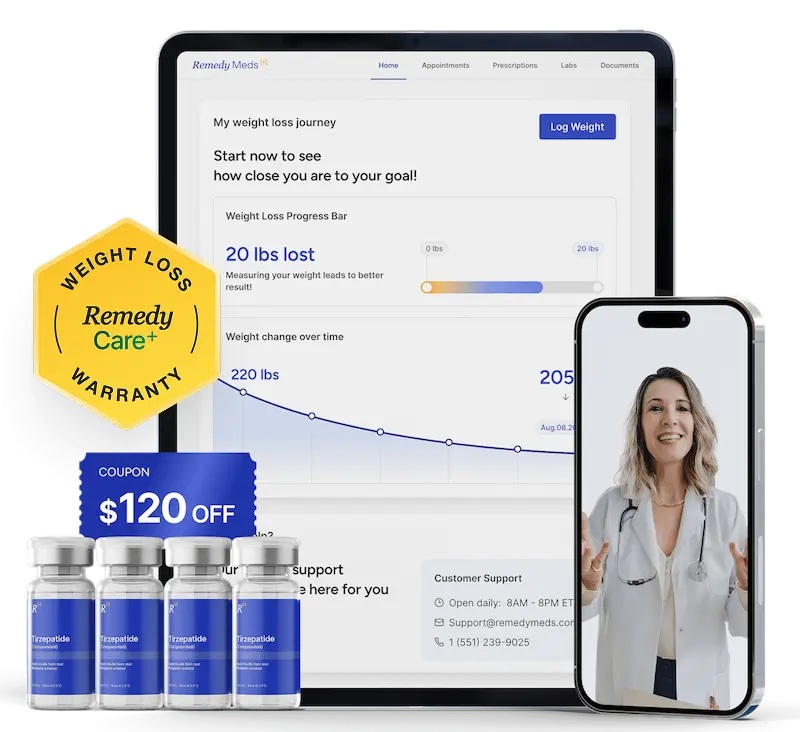 Lose up to 20% of body weight with Remedy Meds GLP-1 medical weight loss program. Weight loss is finally easy with a prescription to GLP-1 medication. No hidden fees. Everything You need, All in One Place